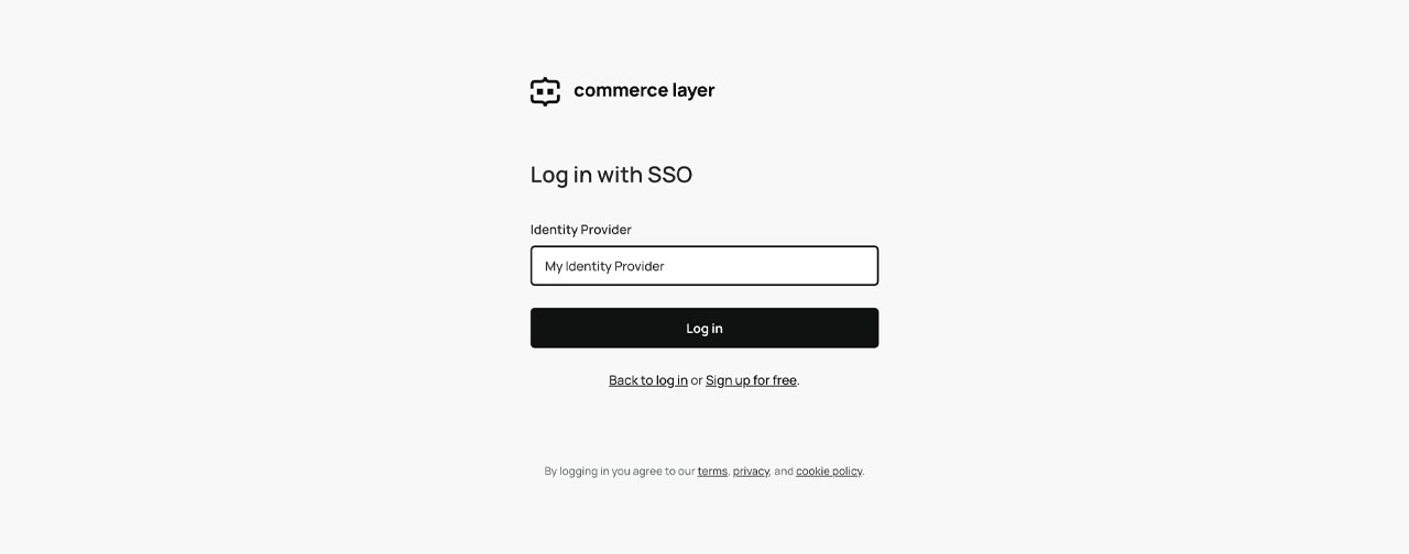 Once you have successfully set up and verified one or more identity providers, you can use them to [log in to Dashboard](https://dashboard.commercelayer.io/) with SSO. To do that: